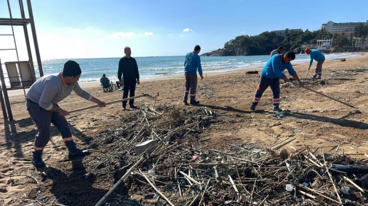 Alanya'da fırtına sonrası plajlarda temizlik yapıldı