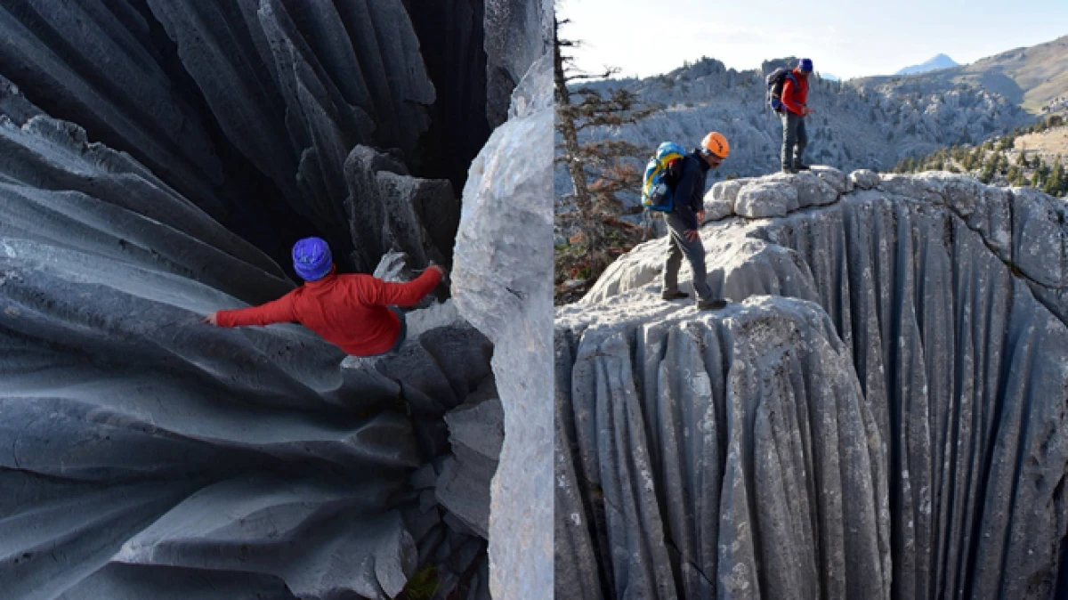 Antalya ve Konya sınırlarında birçok efsaneye de konu olan Giden Gelmez Dağları'nda derinlikleri 100 metreyi aşan keskin kayalık çukurlar, dikey mağaralar ve uçurumlar görüntülendi.