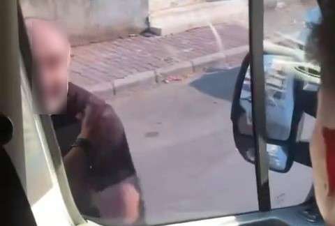 Öfkeli kişi çevredekiler tarafından sakinleştirilirken, o anlar minibüste korku dolu dakikalar yaşayan yolcuların cep telefonu kameralarına yansıdı.