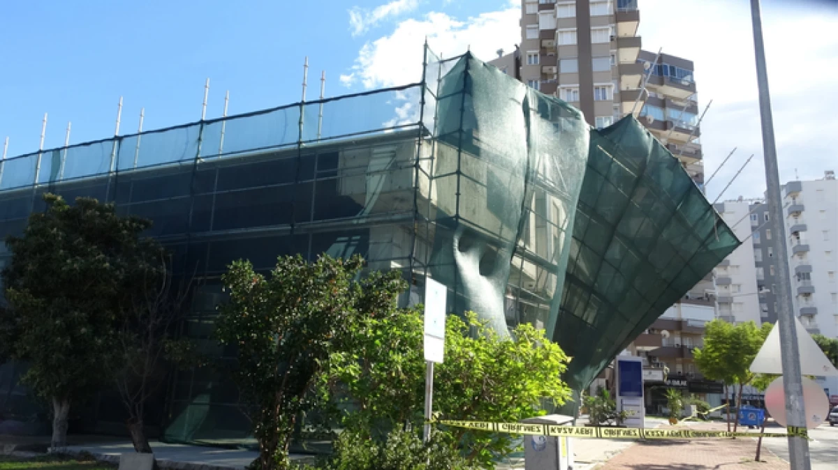 Antalya'da şiddetli rüzgar inşaat iskelesini yerinden söktü