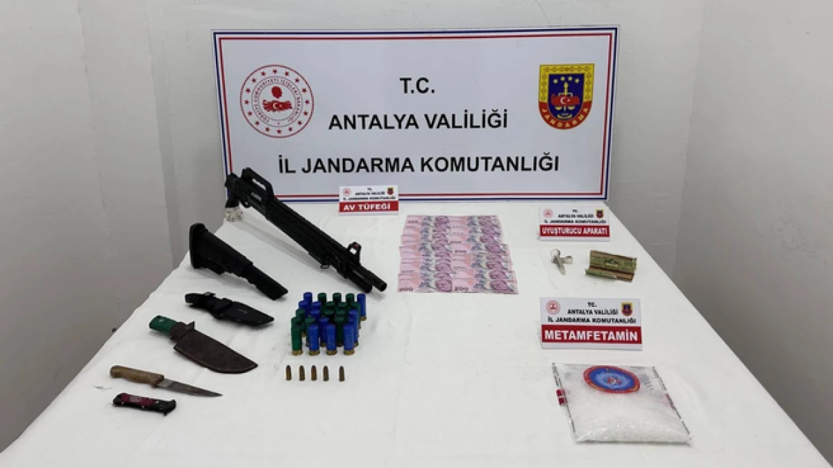 Antalya'da jandarma ekiplerince düzenlenen operasyonda yüklü miktarda uyuşturucu madde ile silah ve mühimmat ele geçirilirken, 3 şüpheli gözaltına alındı.