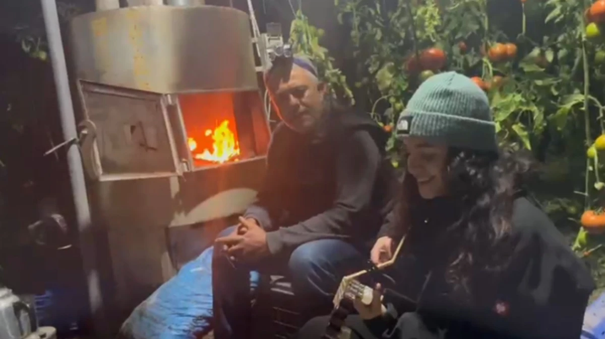 Türkiye'nin en büyük örtü altı üretimi yapılan Serik'te üreticiler, gece saatlerinde hava sıcaklığının 0 dereceye kadar düşmesi sonrası, ürünlerini dondan korumak için gece boyunca seralarda soba yakarken kimisi de dumanlama yöntemini tercih etti. Üreticiler gece boyunca sık sık derece ile sera içerindeki ürünleri kontrol ediyor. Çandır Mahallesi'nde domates üreticiliği yapan Arısoy ailesi, sabaha kadar sürecek nöbette gitar eşliğinde söylenen şarkılarla, sabaha kadar süren nöbette birbirlerine destek oluyor.
