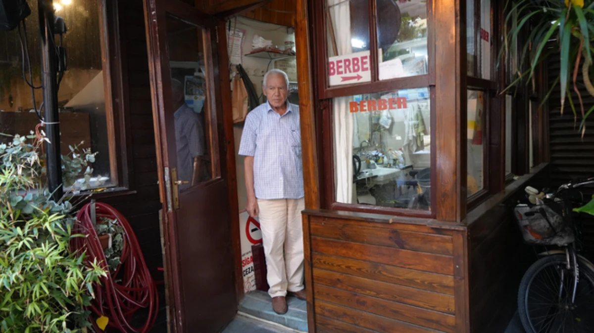 Antalya'da tarihi Zincirli Han'ın içinde yalnızca 5 metrekarelik ahşap kulübede tek koltukla hizmet veren 75 yaşındaki berber, 45 yıldır aynı dükkanda makas sallıyor.