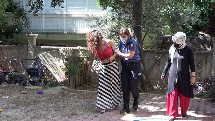 Muratpaşa ilçesi Yüksekalan Mahallesi 523 Sokak’taki bir apartmanda bugün saat 10.00 sıralarında bahçeye çıkan vatandaşlar, kilim üzerinde yatan kadını görüp, 112 Acil Çağrı Merkezi'ne bildirdi. Adrese polis ve sağlık ekipleri sevk edildi. Gelen polis ekipleri, vücudunda yara ve morluklar bulunan kadını hastaneye götürmeye ikna etmek için çaba harcadı. İsmi öğrenilemeyen kadın polis ekiplerine hakaret edince, bu kez apartmanda oturanlar devreye girdi. Bir kadın polis memuru tarafından ikna edilen kadın, ambulansla hastaneye kaldırıldı.
