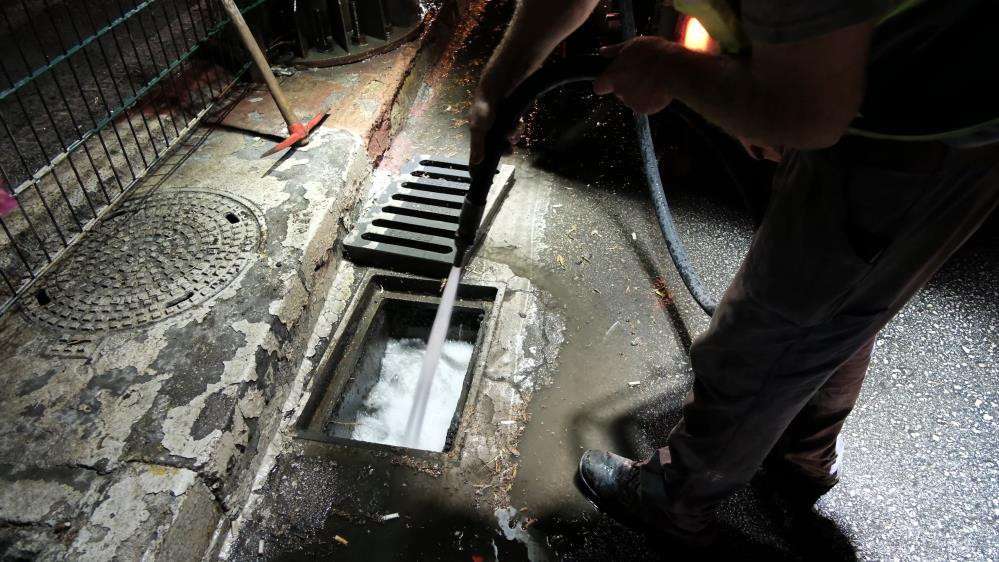 ASAT ekipleri yağmur suyu hatlarını temizliyor