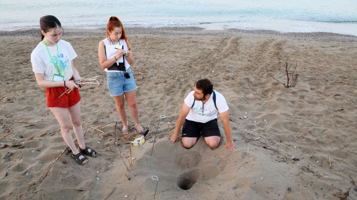 Kampta çadırlarda kalan görevli ve gönüllüler, her gün saat 04.00'te uyanıp, saat 09.00-10.00'a kadar 30 kilometrelik sahili ekipler halinde tarayıp, yuvaları tespit ediyor. Her birine tarih ve numarası yazılı çubuklar bırakıp, yuvanın üst kısmına gömdükleri pinpon topuyla işaretliyorlar. Yumurtaların yuvadan çıkma günü geldiğinde de yuvalar kazılıp kontrol ediliyor ve çıkamayan diğer yavrular da gönüllüler eliyle denize ulaştırılıyor.
