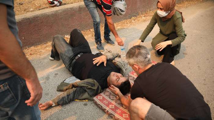 Antalya'nın Manavgat ilçesinde, 2 gündür süren yangında evi alevler arasında kalan ve otomobiliyle benzin almaya giden Yusuf Arslan (19), bir kazaya neden oldu.
