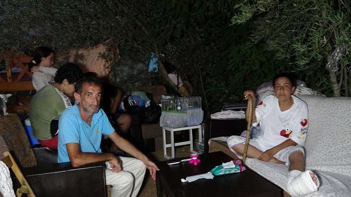 Sürekli hastanede tedavi görmek zorunda olduğunu belirten anne Sebahat Halilibrahimoğlu, “Ayağımın da kırılmasıyla tüm işler eşimin üstüne kaldı. Bir de beni sürekli diyalize götürüp gelmek zorunda kaldı. Ben yüzde 90 engelliyim, ayağım kırık olduğu için ayağa bile kalkamıyorum. 3 çocuğumuz var birisi engelli ve rehabilitasyon merkezine devam ediyor. İşten ve kaldığımız yerden çıkarıldıktan sonra ev tutacak imkanımız ve paramız olmadığı için eşyalarımızı da alıp babamdan kalan ve mahkemelik olduğu için tapusu olmayan bu tarlaya geldik. 5 gündür burada açıkta yaşıyoruz. İhtiyaçlarımızı da burada gideriyoruz. Yiyecek-içecek bir şeyimiz yok. Yetkililerden başımızı sokabileceğimiz bir konteyner ve gıda yardımı bekliyoruz” dedi.