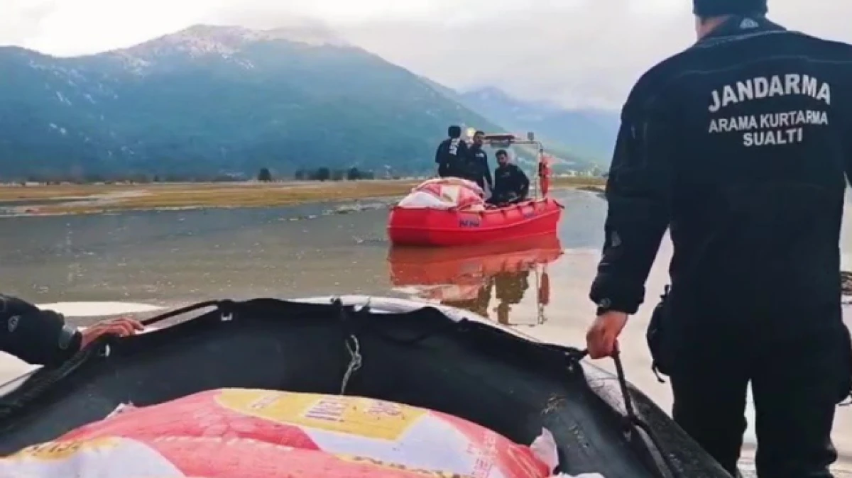 Antalya'nın İbradı ilçesinde jandarma ekiplerince şiddetli yağış nedeniyle yaylada mahsur kalan çoban ile 100 büyükbaş ve 450 küçükbaş hayvana yem ve erzak ulaştırıldı.