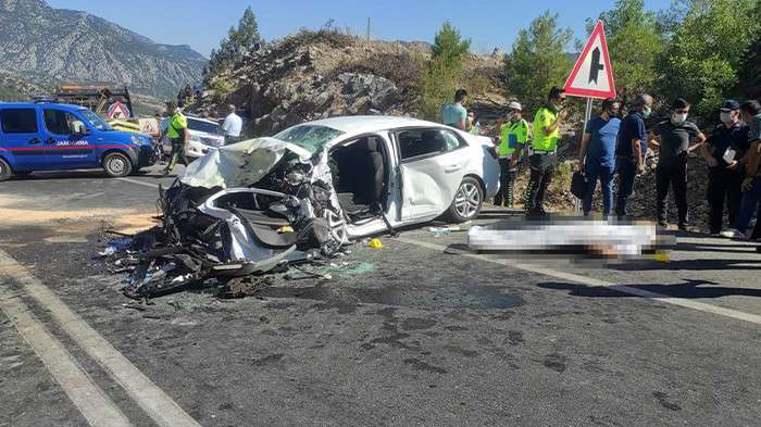 Antalya'nın Akseki ilçesinde iki otomobilin kafa kafaya çarpıştığı kazada polis memuru İsa Karadine (34) ile oğlu Emir Çetin Karadine (5) yaşamını yitirdi, 5 kişi de yaralandı.