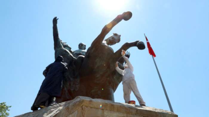 Doğada bronz heykellerin 3-4 bin yıl bozulmadan ayakta kaldığını söyleyen anıtın bakım işlemini yapan firmanın sahibi Mahmut Tunçez, gerekli izinlerin alındığını heykelin orijinal görünümüne kavuşacağını bildirdi. Temizliğin 10 gün süreceğini söyleyen Tunçez, heykelde boyaya bağlı olarak çizgi çizgi akıntılar oluştuğunu kaydetti. Heykel bakım ve temizliğin ardından eski görünümüne kavuşacak.